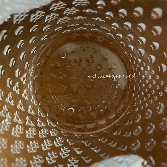 グラスの側面に製造時に出来たと思われるラインと、グラス底のガラスの中に白いライン・底の内側表面に小さい突起が数か所あります。それ以外に目立った傷は無く大変綺麗なヴィンテージコンディションです。