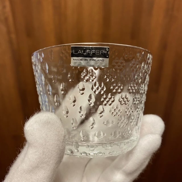 こちらの商品は、「LAUFFER」のロゴシールが残っており、アメリカでARABIA社・Nuutajarvi社の販売代理店をつとめていたLAUFFER社のものと思われます。(製造はFinlandで、入っていた箱にはLAUFFERとARABIAのダブルネームになっています。)