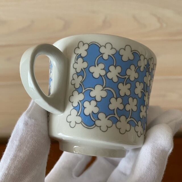 ピッツィカートシリーズには、ブルーとオレンジがありますが、こちらは水色の素地に白い小花のデコレーションがカップ全面に描かれています。