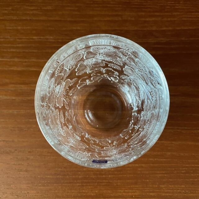 しっかりとした厚めのグラスで、外側に施された花模様は奥行きがあり立体的なデザイン。