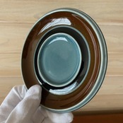 コンディション:ソーサー表面に小さい凹み・小さい突起による擦れ・浅い凹みがあり、少し多めの小傷があります。カップの側面に水垢のような薄いライン状のくもりがあり、持ち手内側には製造時の素地のしわによるラインがあります。素地のしわに関しては釉薬の下にあり亀裂ではないため価格への影響はございません。艶はあり大きなダメージも無く、良好なコンディションを保っています。