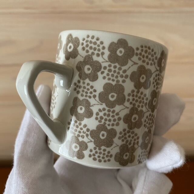 Raija Uosikkinen/ライヤ・ウォシッキネンがデコレーションを手がけ、カップ前面に描かれた小花模様と果実柄は、素朴な印象の可愛らしいデザイン。