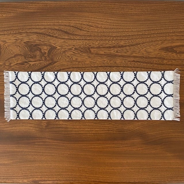 ミナペルホネンtambourine/タンバリン(ホワイト色にネイビー色の刺繍)の生地で作ったマルチクロスです。