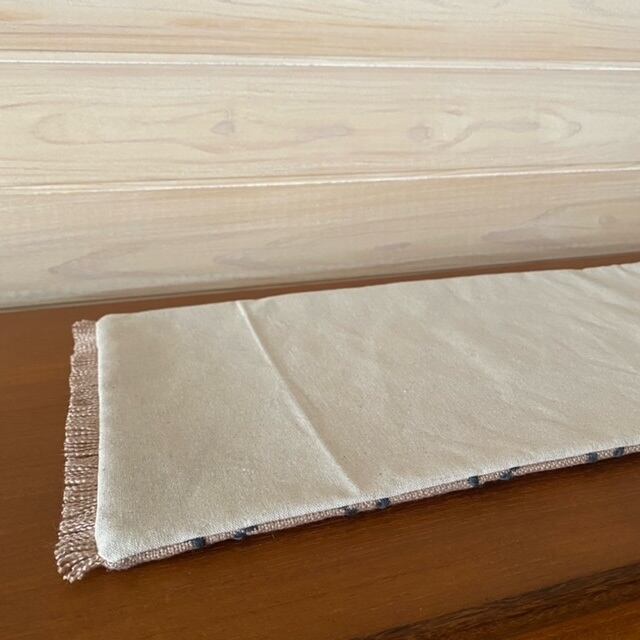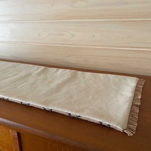 両サイドに同じ生地の端布で作ったフリンジを付けて、豪華な仕上がりにしました。