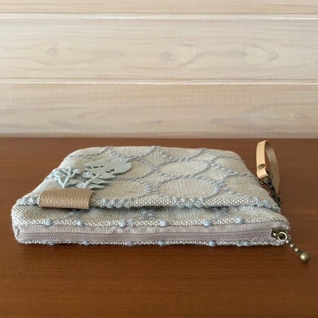 ミナペルホネンtambourine(ライトベージュ+ライトブルー) handmade スクエアポーチ②