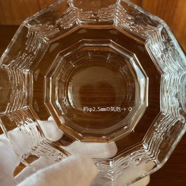 コンディション:ガラスの底に約φ2.5㎜の気泡と極小小傷が見えます。側面の小傷はほぼ無く、ガラスも綺麗で良好なヴィンテージコンディションです。約φ2.5㎜の気泡を考慮した価格となっております。