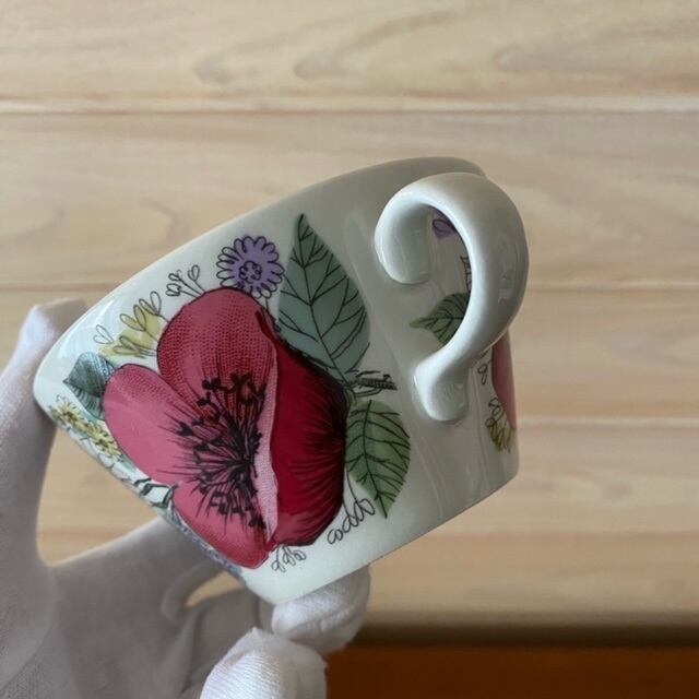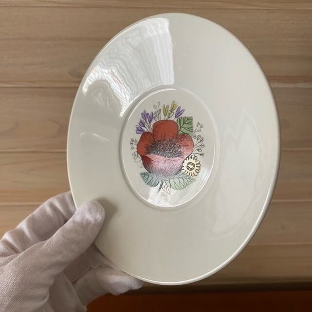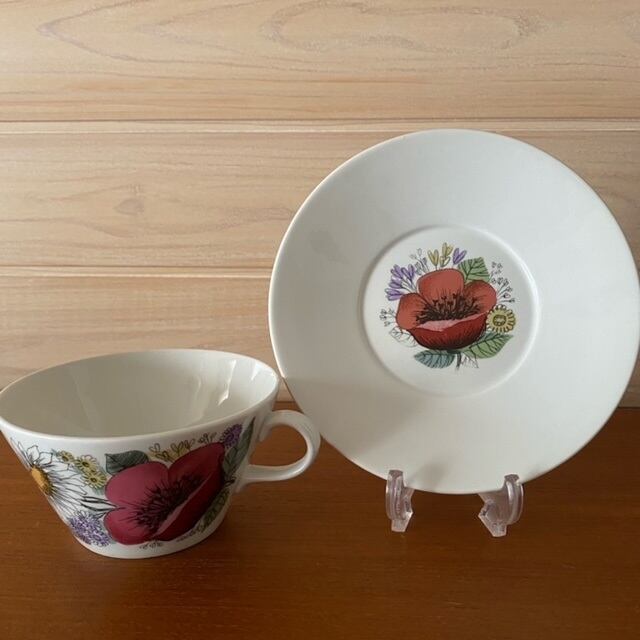 異なるタッチの花達が全面に描かれたカップと、カップ接地面にまで絵付けされたソーサーの組み合わせは、大変美しくデザイン性の高さがうかがえます。