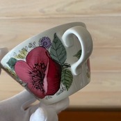 異なるタッチの花達が全面に描かれたカップと、カップ接地面にまで絵付けされたソーサーの組み合わせは、大変美しくデザイン性の高さがうかがえます。