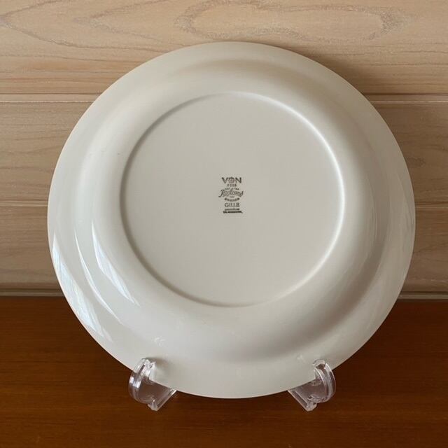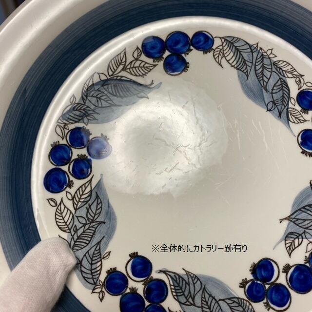 コンディション: 表面に薄く極小のペイントとび・裏面に小さいペイントの付着があり、ディナープレートのため光にかざすとわかるカトラリー傷が、表面全体的にございます。艶があり、ヒビ・欠け・貫入も無い良いヴィンテージコンディションですが、表面の小傷を若干考慮した価格となっております。