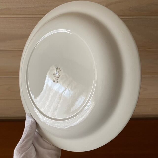 コンディション: 表面に小さいペイントとびと小さい黒点・裏面に素地のライン状の変形があり、ディナープレートのため光にかざすとわかるカトラリー傷が、表面全体的にございます。艶があり、ヒビ・欠け・貫入も無い良いヴィンテージコンディションですが、表面の小傷を若干考慮した価格となっております。