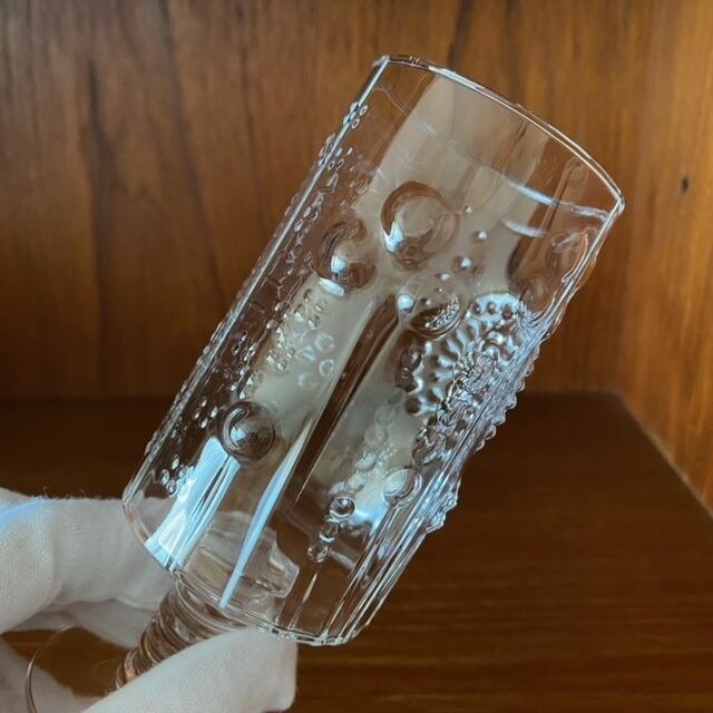 フィンランドNuutajarvi/Arabia社のFloraフローラ(クリア) 脚付きワイングラスが入荷致しました。在庫はコンディションに大きな個体差のない3個です。(価格はグラス1点のものとなります)