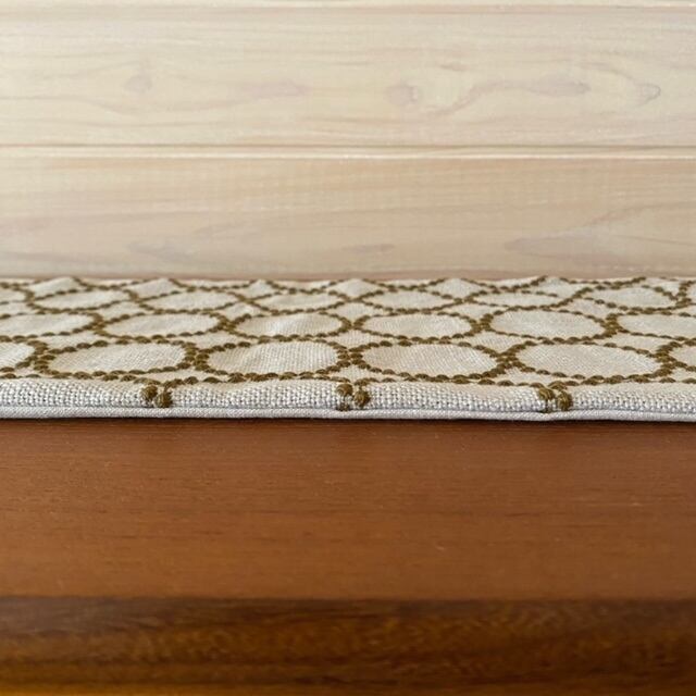 優しいベージュ色とカーキ寄りのブラウン色刺繍が落ち着いた雰囲気を醸し出しています。