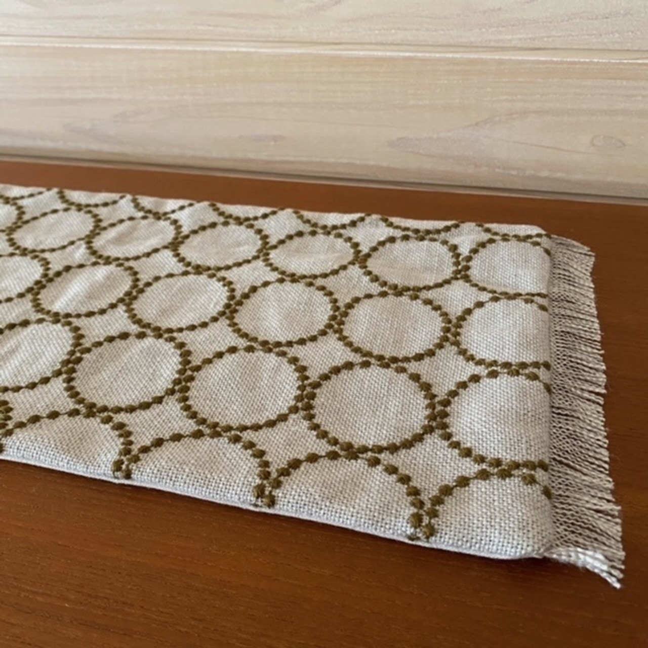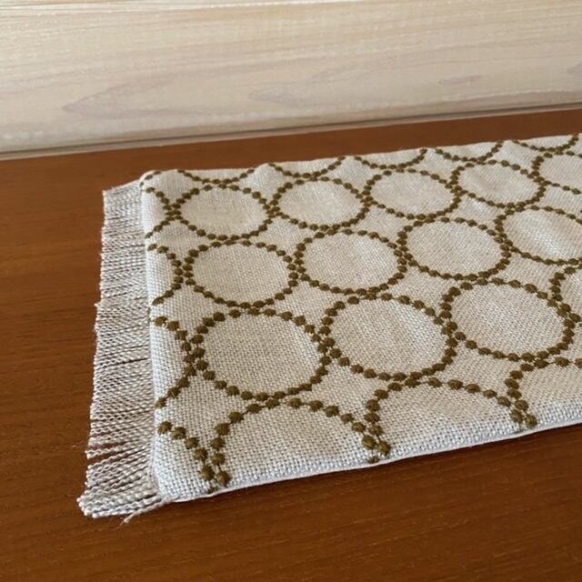 ミナペルホネンtambourine/タンバリン(ベージュ色にブラウン色の刺繍)の生地で作ったマルチクロスです。