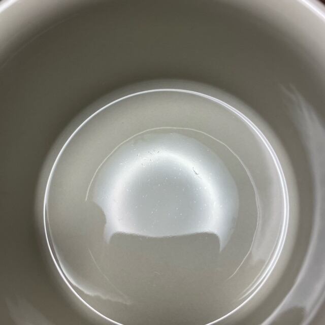 カップ側面ペイント部分に薄い小傷があり、カップ裏面底に光にかざすとわかる水垢跡・カップ裏面高台付近に釉薬の小さい剥がれがあります。