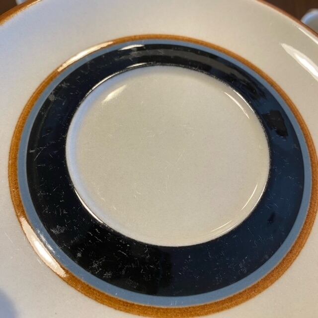 またソーサー表面のカップ接地面・黒いペイント部分に若干の擦れ・小傷があります。