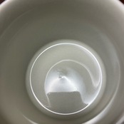 ソーサー表面に小さい突起があり、カップ裏面底に光にかざすとわかる水垢跡があります。