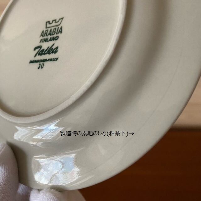 ソーサー裏面縁部分に製造時の素地の長いしわ(釉薬下)があります。