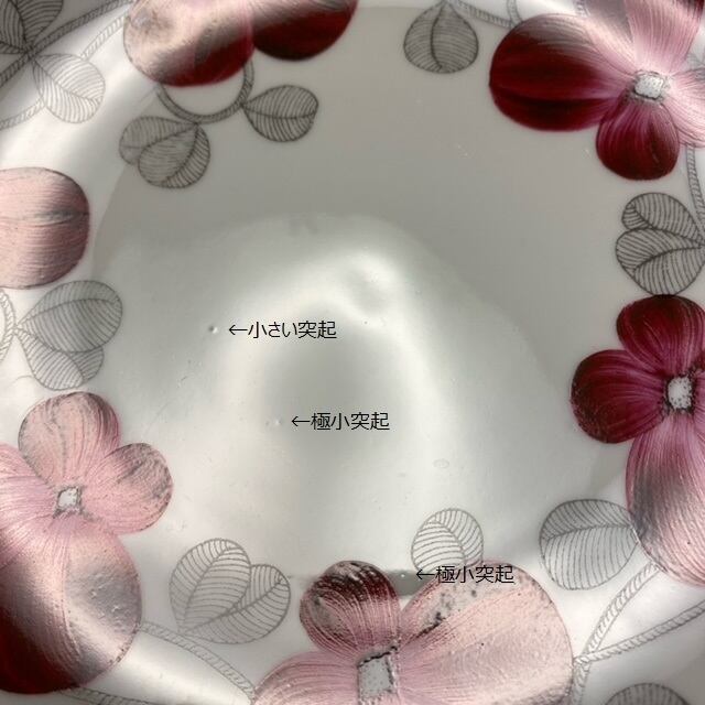 表面に小さい突起が数か所あり、花模様の部分に小さいペイントロスがありますが、小キズは少なく色合いも綺麗で良好なコンディションです。
