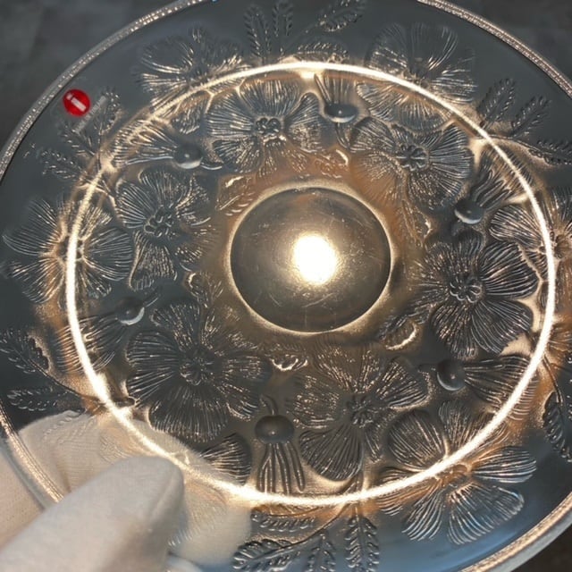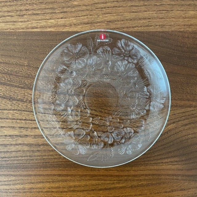 しっかりとした厚めのガラスで、裏面に施された花模様は奥行きがあり立体的なデザイン。